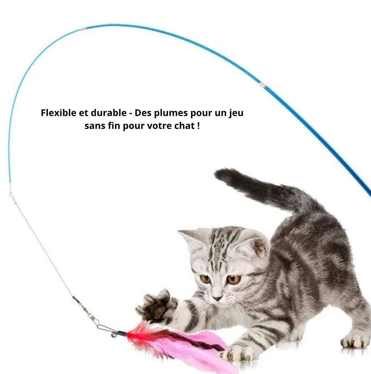 Stimulez l’instinct de chasseur de votre chat avec ce jouet interactif à plumes ! Grâce à sa canne flexible et ses 11 embouts interchangeables colorés, ce jouet est idéal pour offrir à votre félin des heures de jeu, d’exercice et de complicité avec vous.